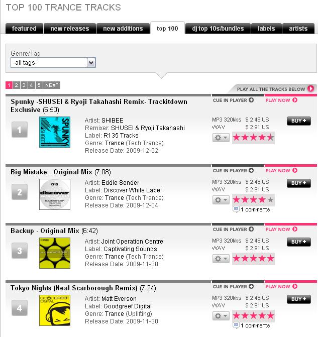 Spunky (SHUSEI & Ryoji Takahashi Remix)がイギリスの trackitdown Trance Chartで1位をマーク