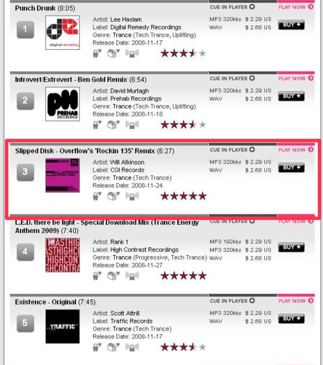 イギリスのtrack it downのトランス・チャート100チャートで3位に